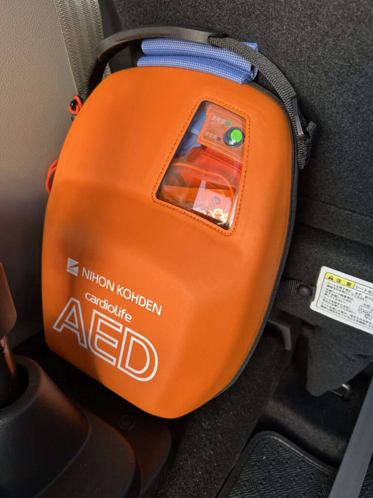 万が一の心停止などに備え、AEDを搭載しています。