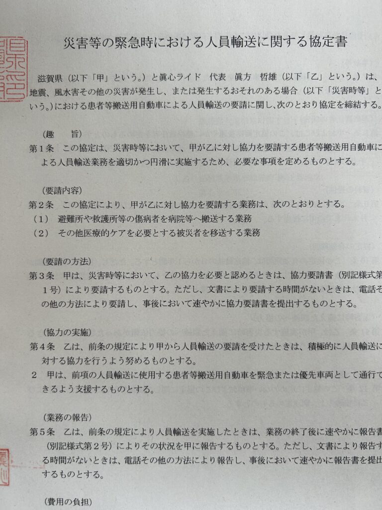 滋賀県と災害時人員搬送協定を締結しました|看護師同乗による医療搬送体制を構築
